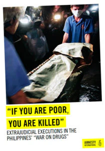 Enligt Amnesty har polisen listor med overifierade namn på personer som uppges bruka eller sälja droger. Polisen stormar ofta deras hem och skjuter ner obeväpnade människor – också de som vill överlämna sig självmant.