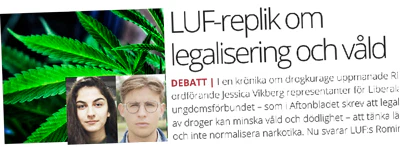 ”För att rädda liven på de ungdomar som idag råkar illa ut tror vi att den behöver legaliseras och regleras. Den behöver komma bort från gatorna och in i butiker där vi kan kontrollera försäljningen så att den inte göder kriminalitet”, skriver Romina Pourmokhtari, vice ordförande i LUF och Max Hjelm, vice ordförande, LUF Storstockholm, i en replik till min krönika.
