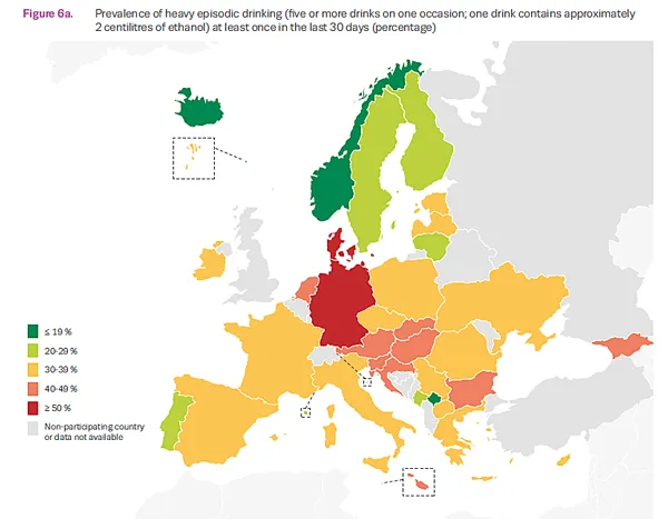 Nivåer på ungas bruk växlar mycket mellan länderna – exempelvis har danska, tjeckiska och tyska ungdomar betydligt högre prevalens och alkoholintag än svenska och norska ungdomar. Av de 35-ländernas deltagande tonåringar uppgav ifjol i snitt 79 procent att de druckit alkohol någon gång, 47 procent senaste månaden och 13 procent varit berusade senaste månaden.