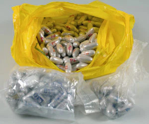 Över hundra kilo kokain och heroin med över 110 miljoner kronor i gatuvärde uppgavs ligan minst ha fört in. Kapslarna hade märkts särskilt för respektive destinationsort.