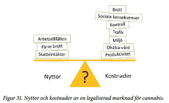 • Konsekvenserna för folkhälsan på längre sikt visar sig först om ett par decennier, men enligt rapporten så står det klart att en legalisering medför betydande skadeverkningar.