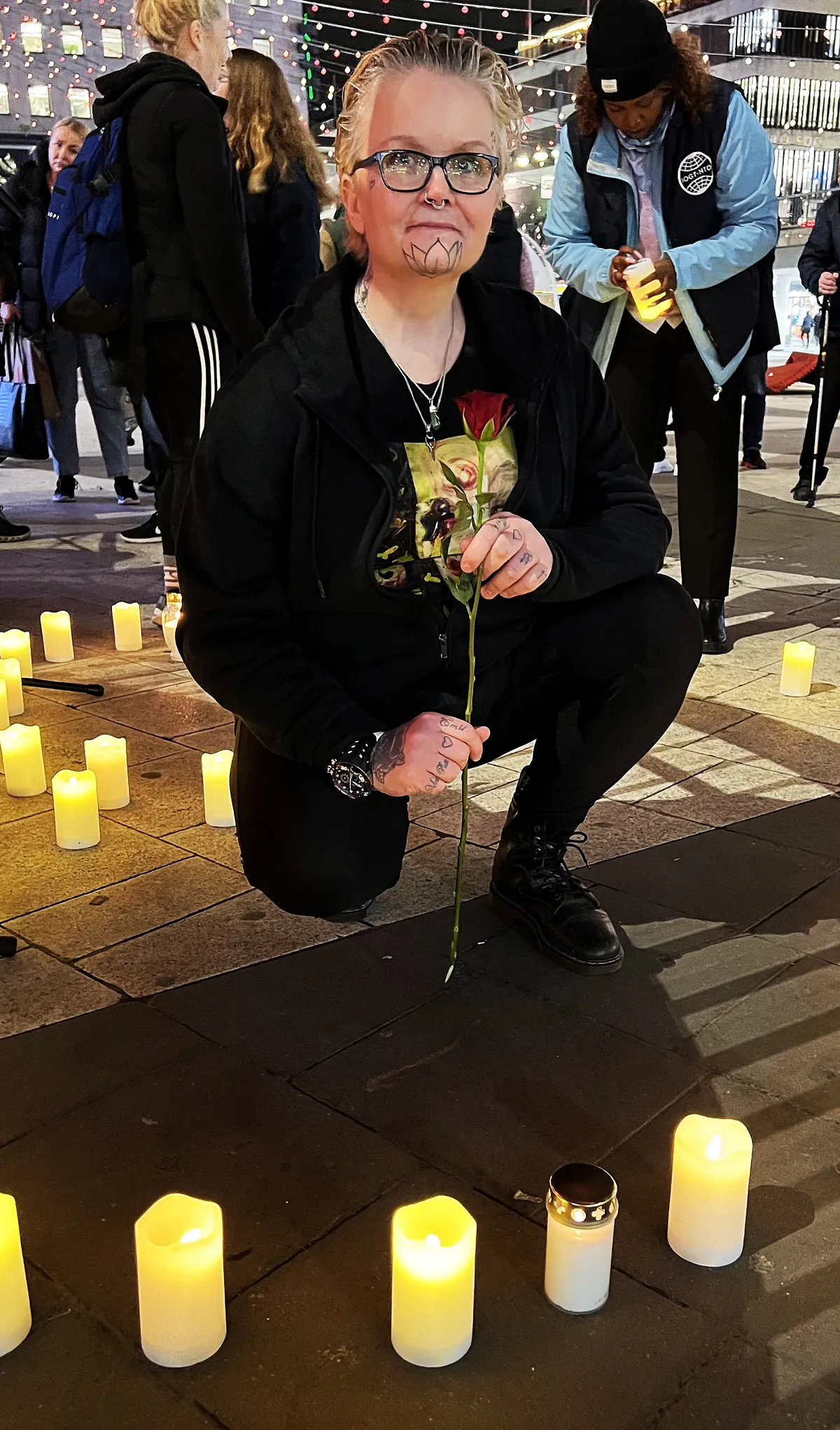 – Idag lever jag ett nyktert liv, det är jag tacksam för. Men jag tänker på de som inte är med oss längre. I midsomras gick min väninna Heide bort i en överdos. Jag kunde själv varit ett av de där ljusen, sa hon till Drugnews medarbetare och la en ros för sin vän.
