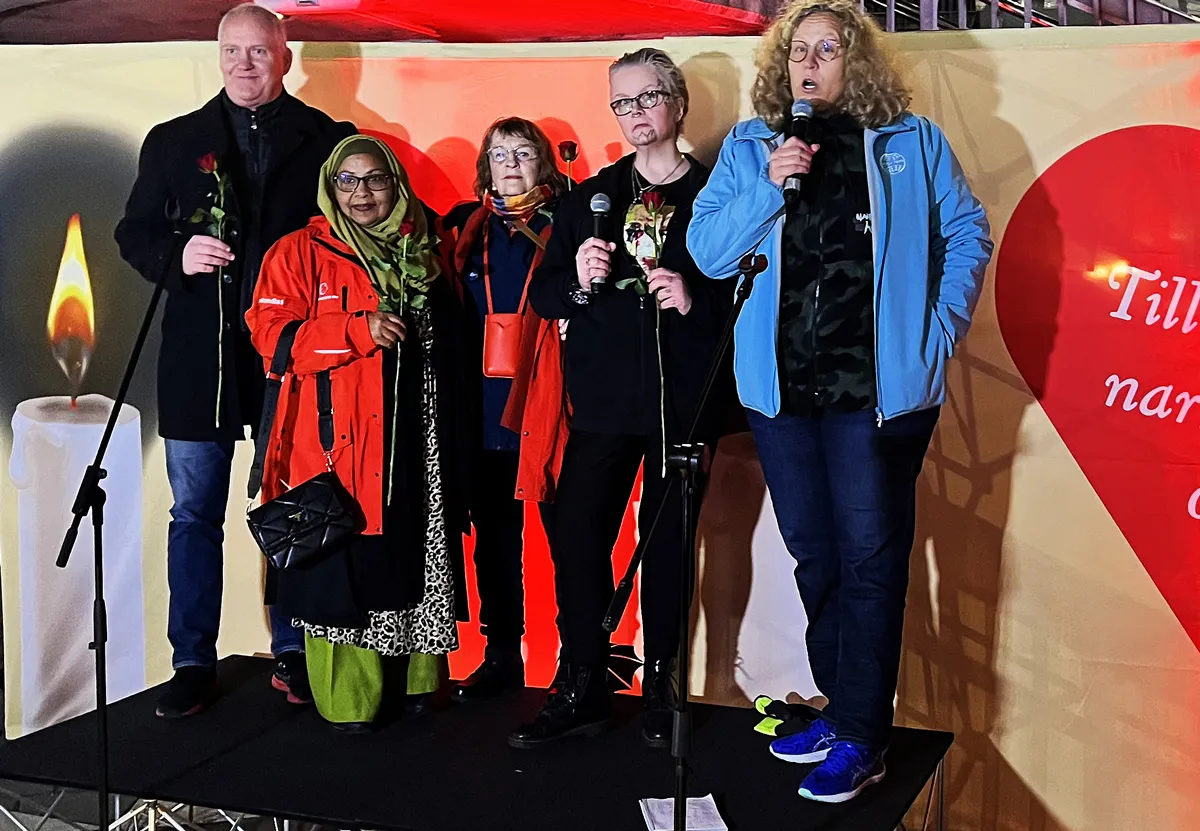 Årligen inträffar minst 800 drogrelaterade dödsfall i landet, och dödliga skjutningar ökar. ”Det behövs mer kärlek i samhället, vi måste bry oss om varandra”, sa narkotikapolisen Lennart Karlsson vid ljusmanifestationen för narkotikans offer på Sergels torg i Stockholm.