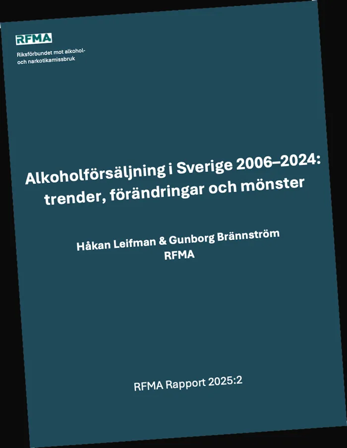 • Fotnot: RFMA-rapport. Alkoholförsäljningen i Sverige 2006-2024: trender, förändringar och mönster (pdf-fil, 28 sidor), författare Håkan Leifman och Gunborg Brännström.